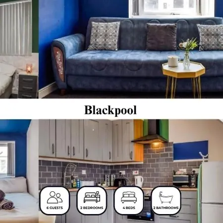 El Bond Street Apartment Near The Promenade With Two Bathrooms And Workspace Blackpool está situado a tan solo 5 minutos a pie de St Peter y a 5 km del aeropuerto internacional de Blackpool.